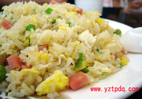 揚州的蛋炒飯,風味各異,品種繁多,有“清蛋炒飯”、“金裹銀蛋炒飯”、“月牙蛋炒飯”、“蝦仁蛋炒飯”、“火腿蛋炒飯”、“三鮮蛋炒飯”、“什錦蛋炒飯”等等。
