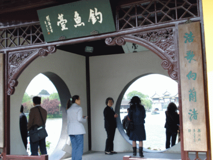 在中國,以“釣魚臺”命名的景點非常多,但揚州的釣魚卻是眾多釣臺中體量最小,也是極富特色的一座。它是中國名亭建筑的典范,是中國園林“框景”藝術的代表作品。站在釣魚臺斜角 60 度,您可以在北邊的圓洞中看到五亭橋橫臥波光:而南邊的橢圓形洞中則正好可以看到巍巍白塔。這一景象一彩一素,一橫一臥,真是堪稱絕妙。這里也是外地游客到揚州一定要留影的地方。那洞中借景的畫面正好對應了“三星拱照”的名稱。