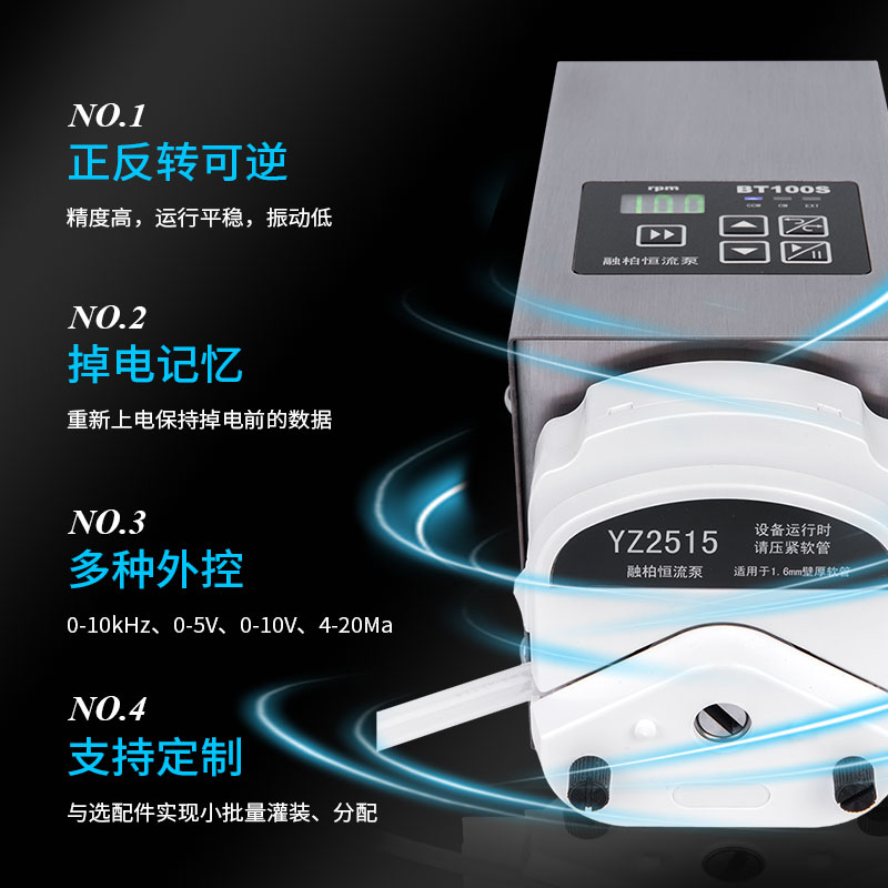 適用于常規(guī)流體輸送、制藥行業(yè)、精細化工、水處理、環(huán)保工程、食品飲料生產(chǎn)劑量添加劑、工藝發(fā)酵系統(tǒng)中補酸補堿消泡、科學實驗等諸多通用領(lǐng)域。